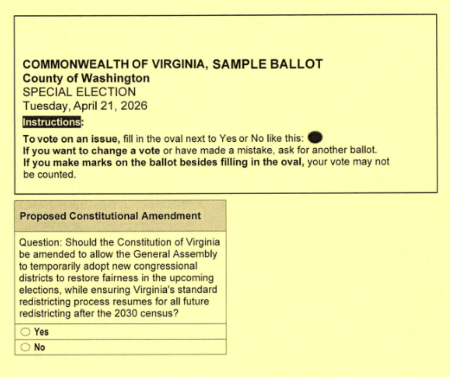 Pictured is a sample ballot.