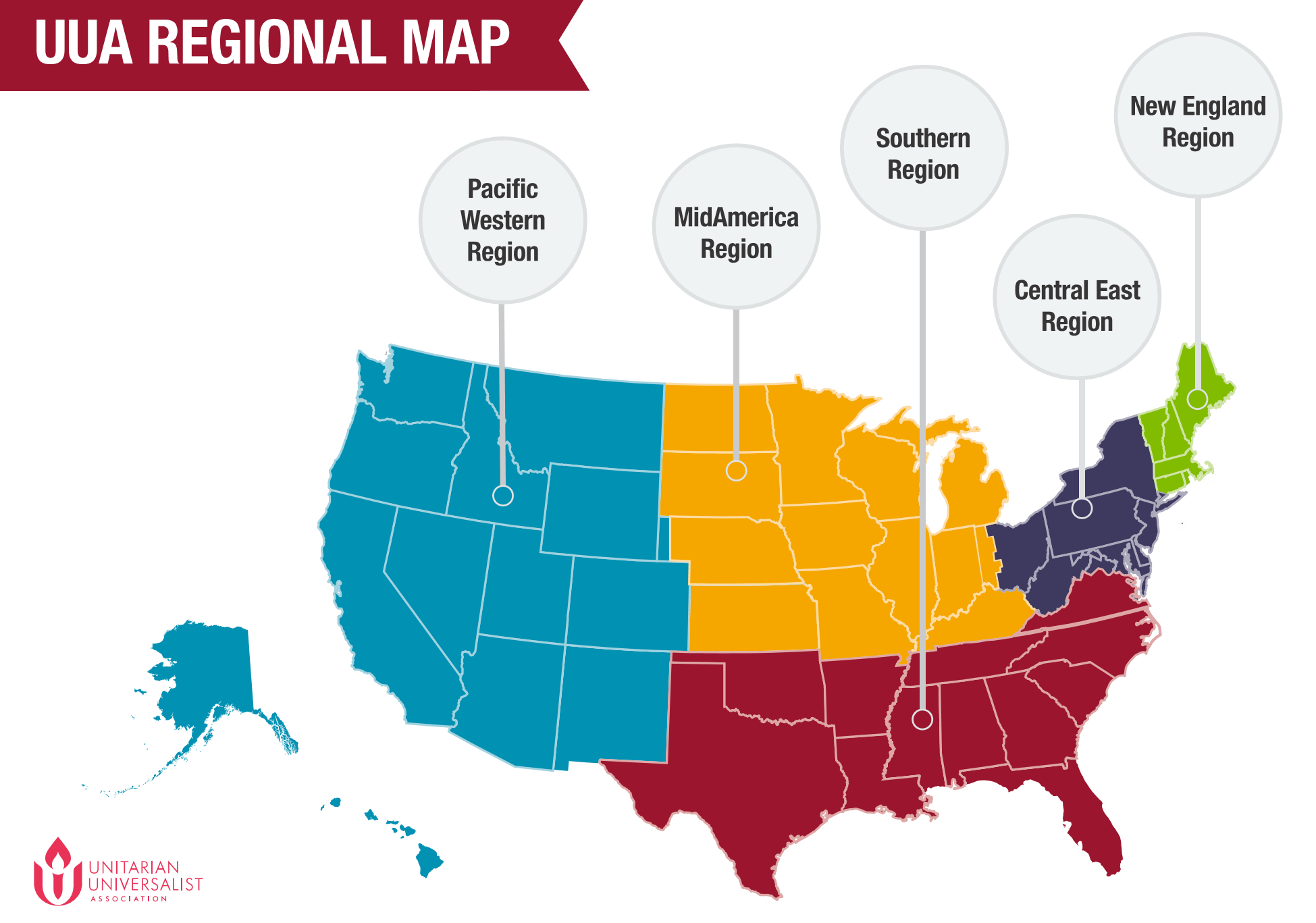 WUU is part of the UUA Southern Region, one of the five UUA regions.